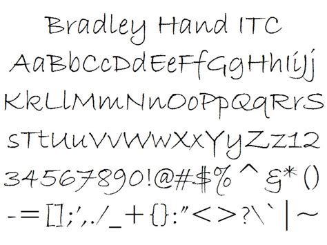 Bradley Hand Font - 83,933 downloads (13 yesterday) free for personal use. All the letters included in this. Web bradley hand by gregory gould its a ttf script handwritten font available for pc & mac. Bradley hand by gregory gould. Web bradley hand itc font is a handwritten font family designed by richard bradley and published through international typeface corporation in 1995.